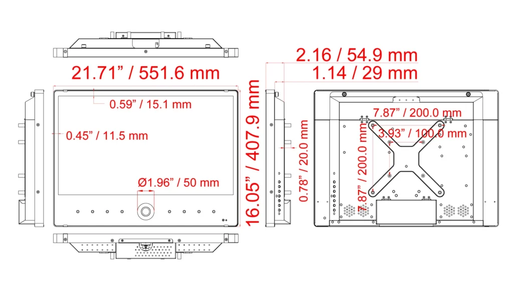 | Outline Dimension (W x H x D) | 21.71 x 16.05 x 2.17” / 551.6 x 407.9 x 55.3 mm |