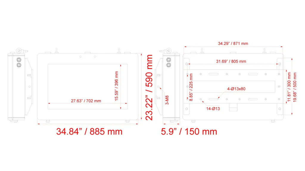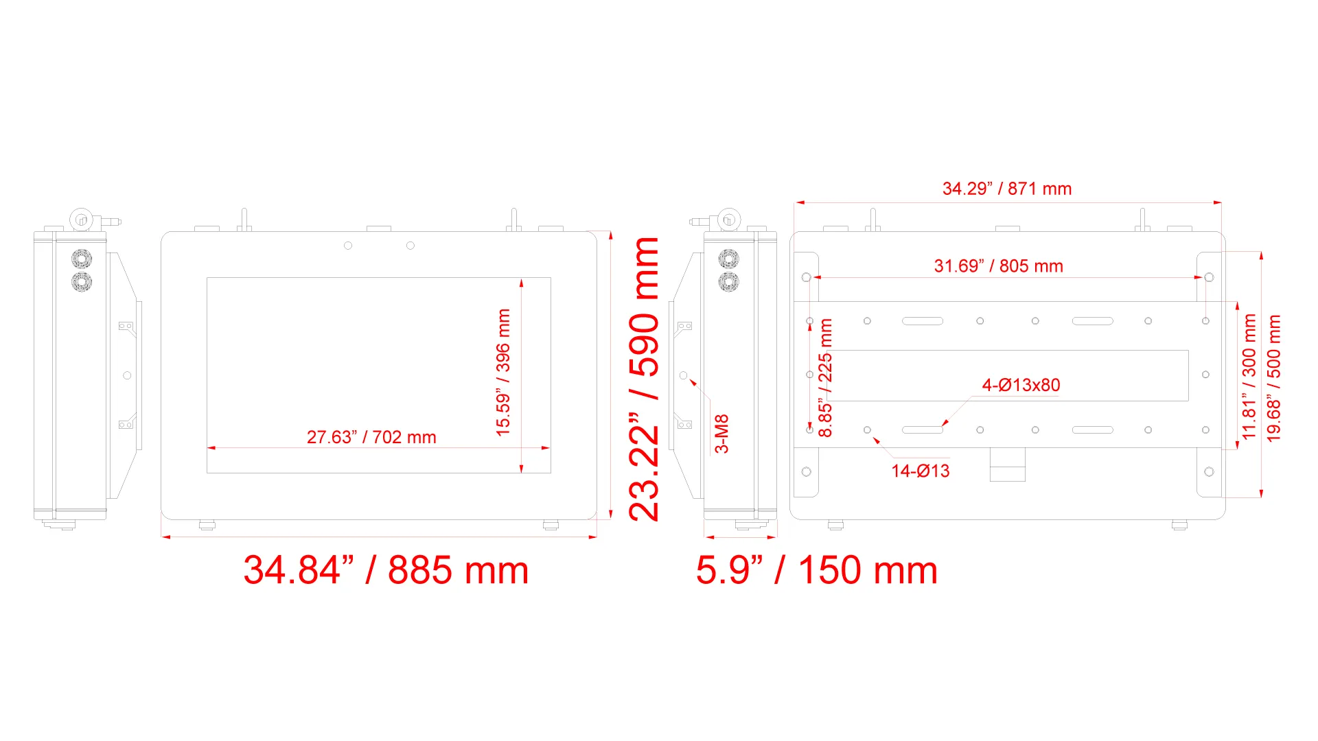 | Dimension (W x H) | 34.84 x 23.22 x 5.9” / 885 x 590 x 150 mm |