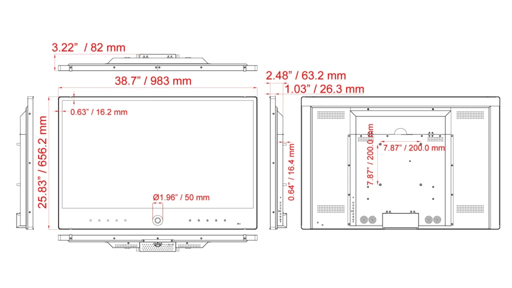 Outline Dimension (W x H x D) 38.7 x 25.83 x 3.24” / 983 x 656.2 x 82 mm