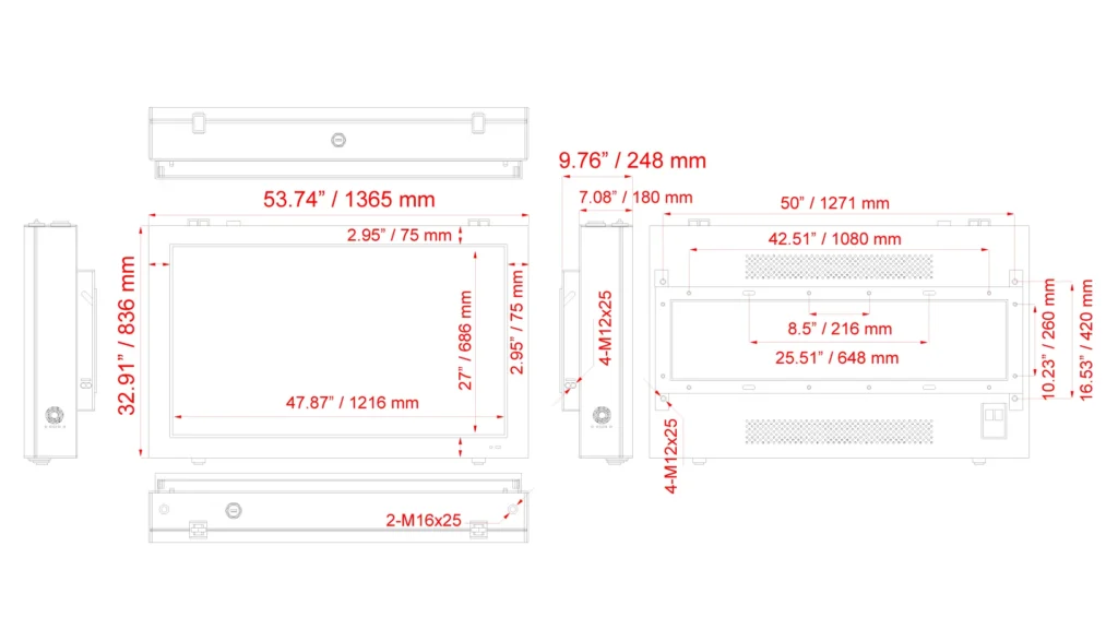 | Dimension (W x H) | 53.74 x 32.91 x 9.76” / 1365 x 836 x 248 mm |