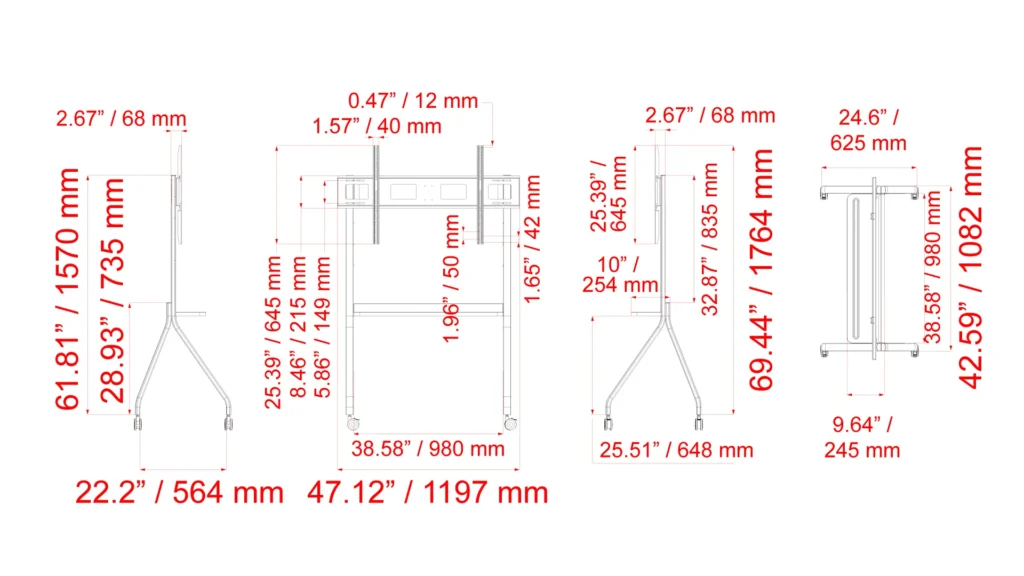 The ViewZ FSM-IBX mount is a mobile freestanding mount for displays weighing up to 176.37 lb / 80 kg with a mounting pattern of 100 x 100 to 1100 x 600 mm.