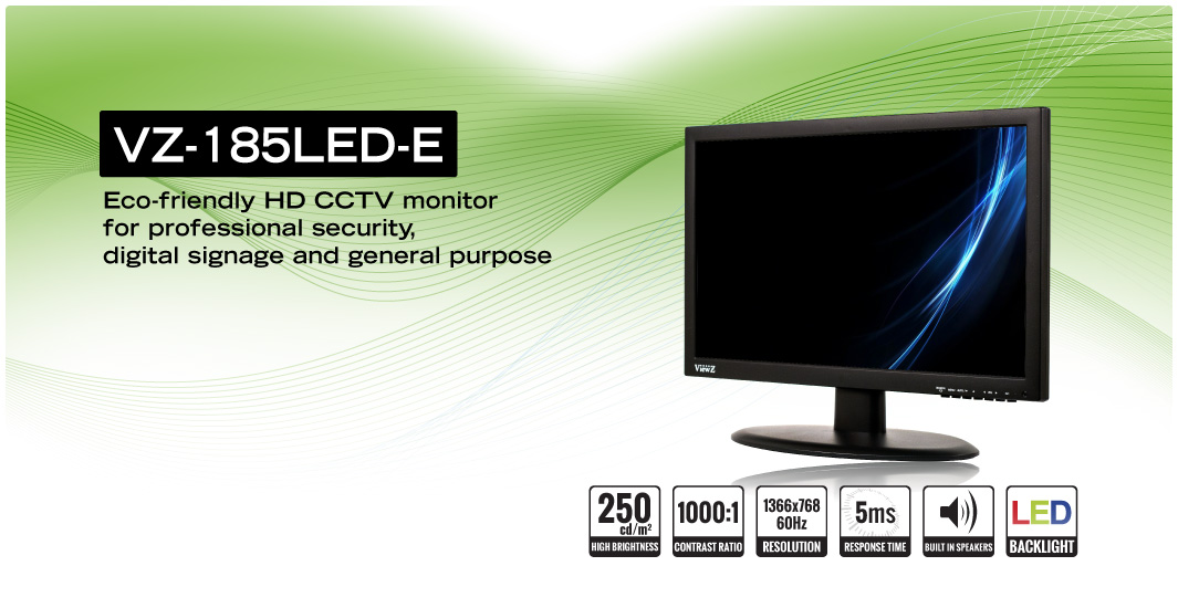 18.5" Black Flat Panel Widescreen LED "A" Commercial-Grade Monitor |