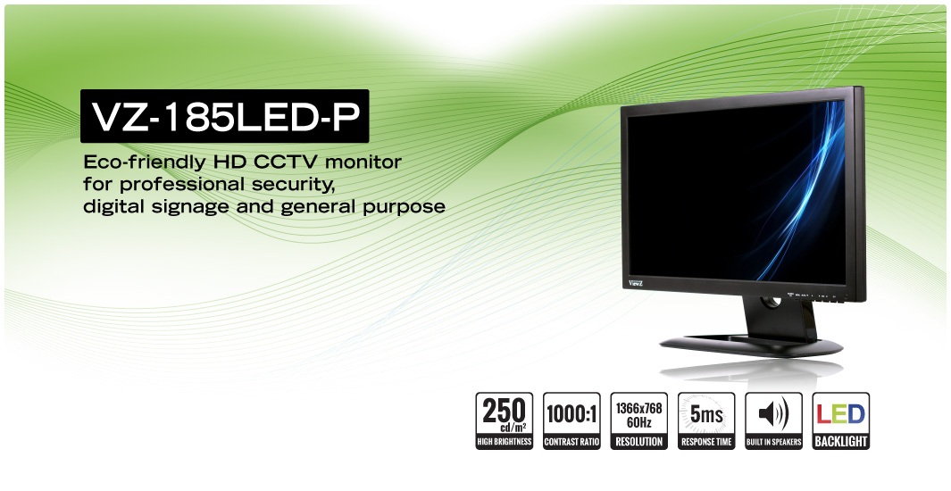 18.5" Black Flat Panel Widescreen LED "A" Commercial-Grade Monitor |