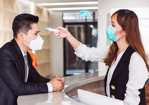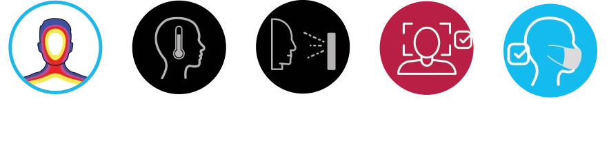 The built-in analytics capability detects if someone is not wearing a mask and will sound an audible message/warning demanding the person to put on a mask and will also send an alarm event notification to its CMS software or access control management much the same way as the high temperature would.