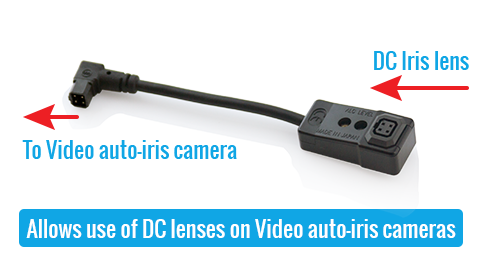 VZ-DLA converts an auto iris lens from DC drive to video drive. A built-in amplifier in the VZ-DLA increases the video signal to automatically operate the open/close commands of the lens in response to changing light conditions.