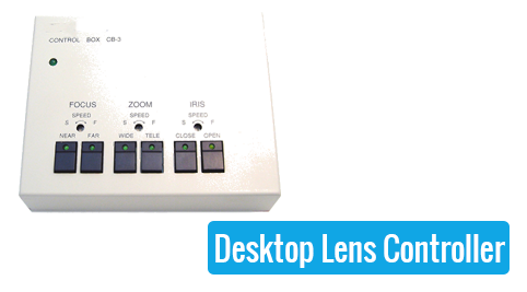 Remote controller for motorized zoom lenses. Focus, zoom and iris can be operated remotely. Please note that the iris on lenses with auto-iris cannot be controlled.