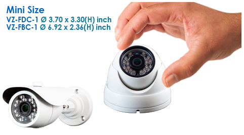VZ-FDC-1 (HD Mini-Dome Fixed Lens camera), VZ-FBC-1 (HD Bullet Fixed Lens camera), VZ-BCHS-1, VZ-BCHS-2 (HD Box Camera), VZ-FBS-2 (HD Mini-Box) and VZ-FMS-2(Mini-Light Weight) are small yet feature- rich. Combination of HD resolution and features like day/night and true WDR results in great performance at a great price.