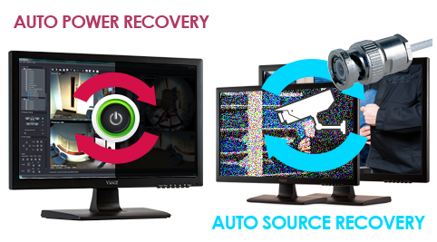 Auto power and source recovery feature on the monitor will automatically restore power as well as its source after power failure.