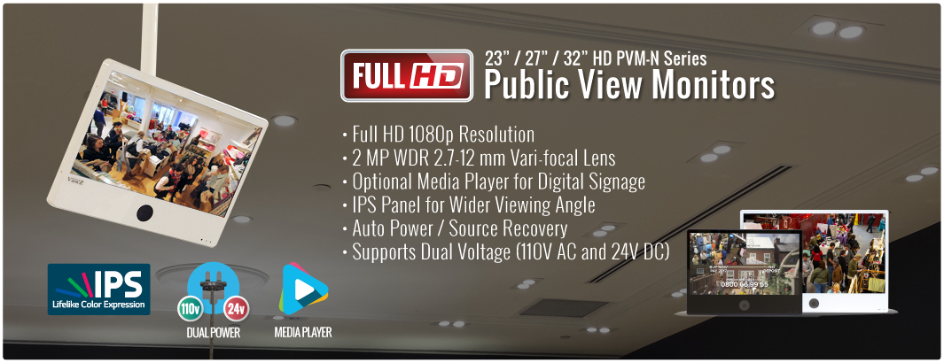 Not only are our Full HD Public View Monitors engineered to be the ultimate retail theft deterrent devices, but they are also designed to be easy to install. All HD PVM-N models offer lasting durability and superior performance. With features required for professional applications, ViewZ HD PVM-N models are much more than just re-purposed consumer-grade monitors with cameras attached.