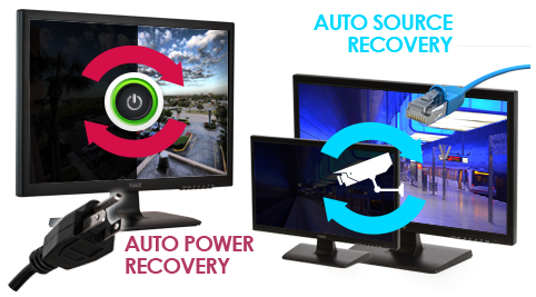 Auto power and source recovery feature on the monitor will automatically restore power as well as its source after power failure.