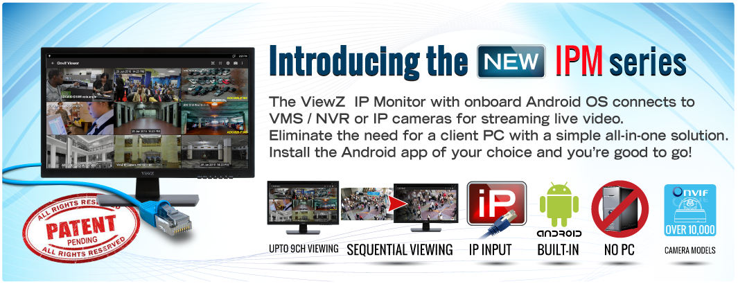 VZ-IPM series also comes loaded with a camera app that directly connects to IP cameras using Onvif protocol or RTSP and supports sequential viewing.