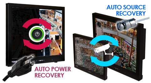 Auto power and source recovery feature on the monitor will automatically restore power as well as its source after power failure.