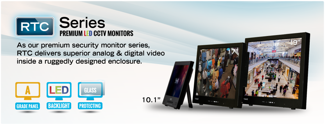 From 10.1 inch to 19 inch in diagonal size RTC series offers wide range of resolution in both 5:4 aspect ratio. Perfect for displaying your analog surveillance video.