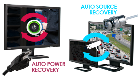 Auto power and source recovery feature on the monitor will automatically restore power as well as its source after power failure.
