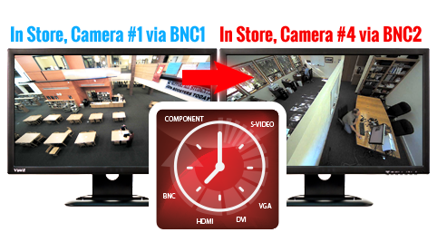 Auto source switching feature allows user to switch display video source in sequence, set using time intervals, among BNC, HDMI, DVI, VGA and other inputs.