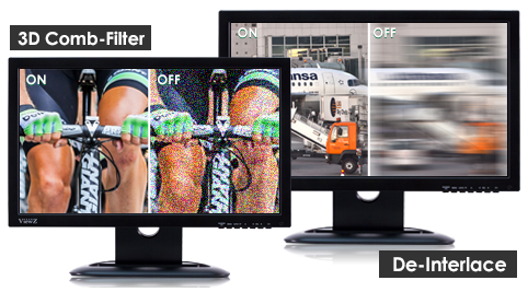 Built-in 3D comb-filter and de-interlace image processor will give you picture perfect image each and every time.