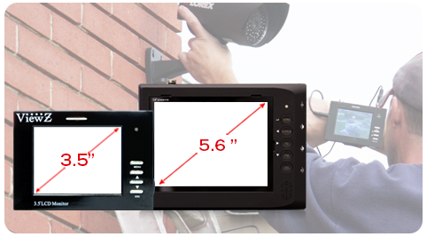 Rechargeable battery operated 3.5 and 5.6 inch test monitor is a perfect tool for fine-tuning your analog camera installation.