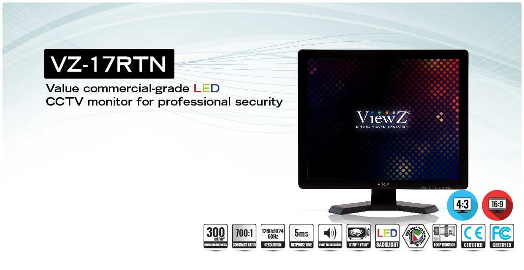 17" Black Flat Panel LED "A" Commercial-Grade Monitor |