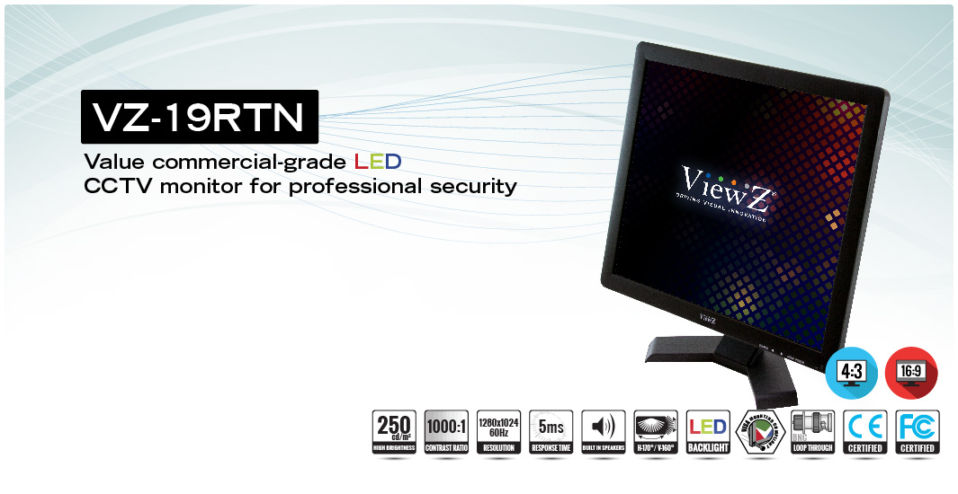 19" Black Flat Panel LED "A" Commercial-Grade Monitor |