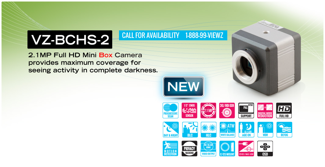 ViewZ BCHS-2 (HD Box camera) are small yet feature- rich. Combination of HD resolution and features like day/night and digital WDR results in great performance at a great price.