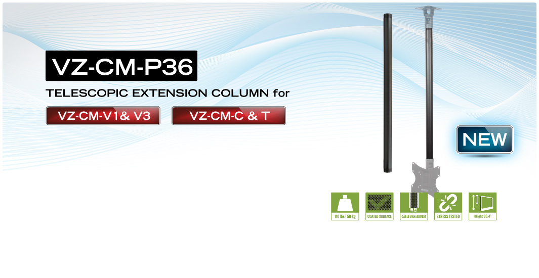 | 2 units of VZ-CM-P36 poles can be connected by using VZ-CM-C pole connector. * Connecting more than 2 poles is not recommended |