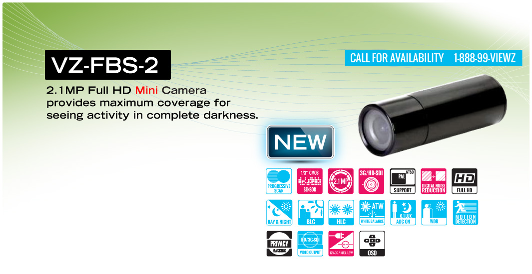 ViewZ FBS-2 cameras feature 1920x1080 (2.1MP) HD output resolution with active 1920 (H) x 1080 (V) pixel resolution