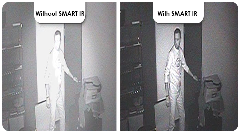 SMART IR technology produces sharp video images in dark environments. This technology eliminates saturation of closer objects by controlling IR sensitivity.