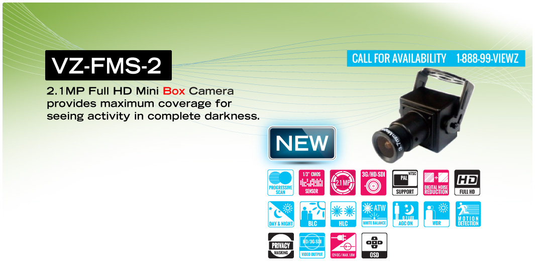 ViewZ FMS-2 cameras feature 1920x1080 (2.1MP) HD output resolution with active 1920 (H) x 1080 (V) pixel resolution