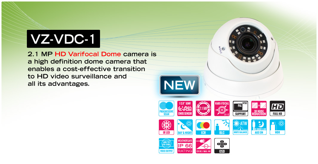 VZ-VDC-1 camera use 24 IR LEDs. They assist with low light situations while using a small product foot print. The entire camera line has a long-life expectancy with high efficiency.