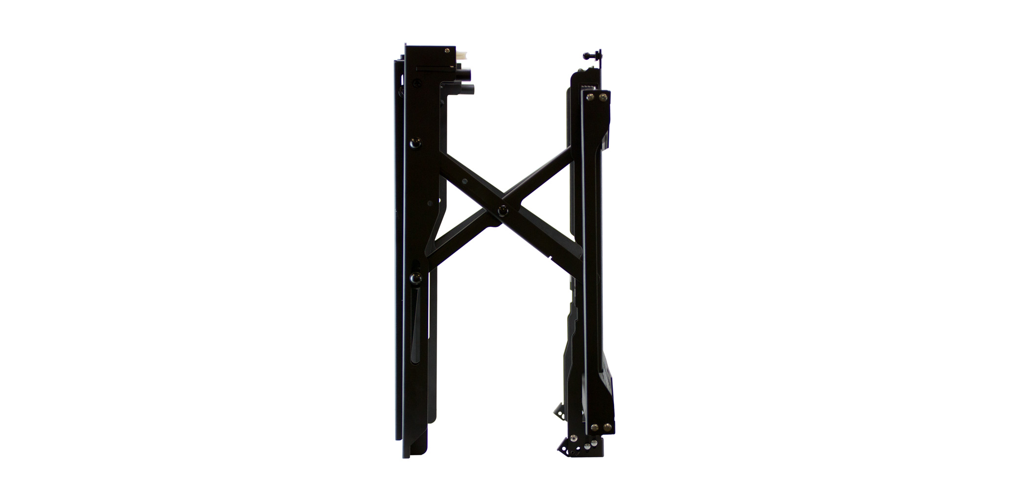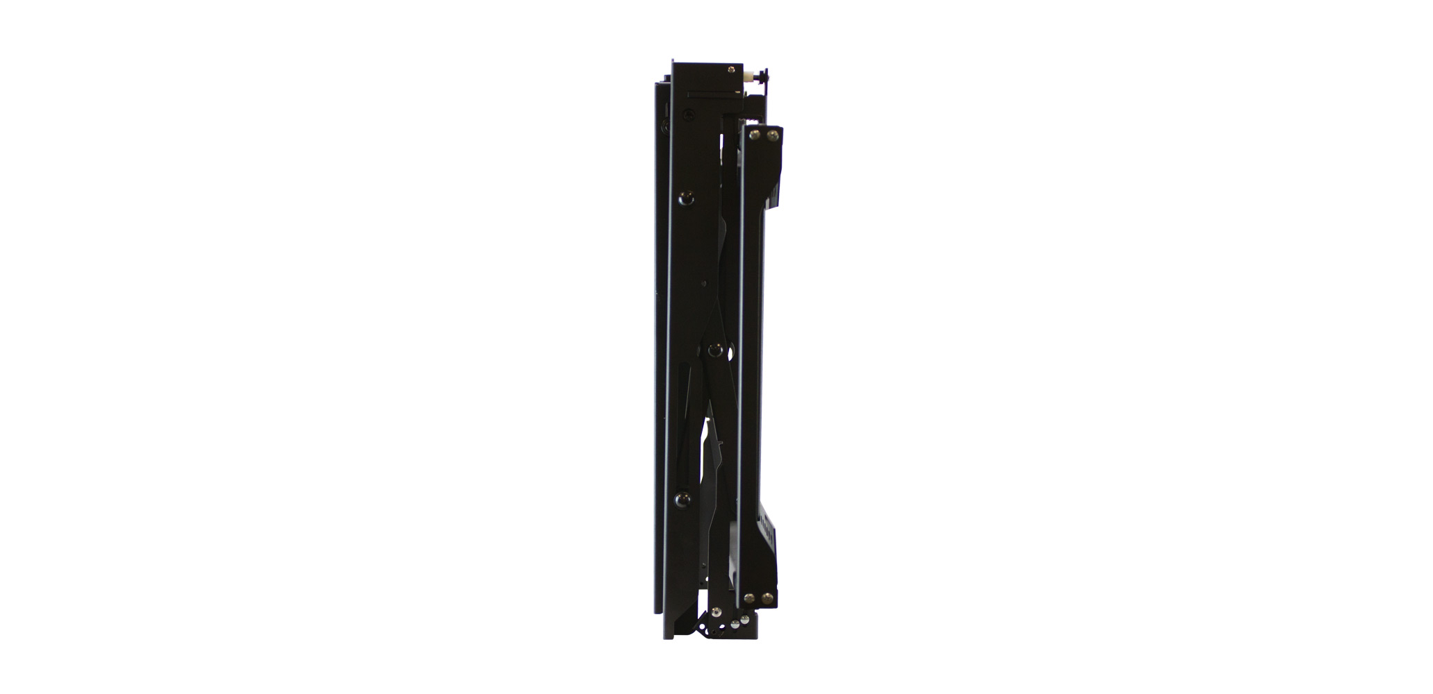 | Scissor design and compact mounting arms allow for extension in one smooth motion | |