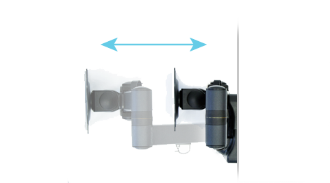 Multiple mounting holes on sliding mounting arm can accommodate various mounting patterns from different size monitors.
