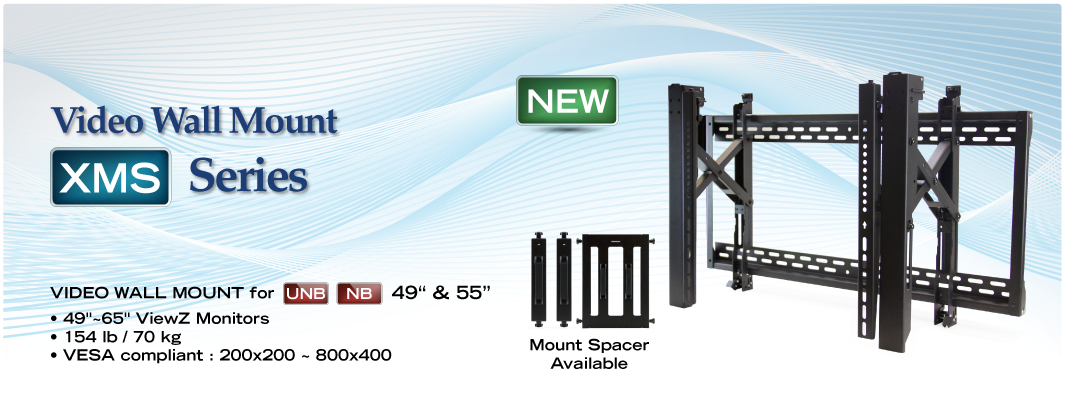 Each XMS series mount can hold up to 154lb or 70.0kg, permitting you to build a heavy, multi-level video wall.